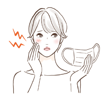 マスク荒れは、摩擦・蒸れ・温度上昇などの影響で皮膚のバリア機能が低下したり、皮脂分泌が過剰になることで起こります。症状としては、湿疹とニキビ様の皮疹が混在することも多く、治療が難しくなる場合があります。可能であればマスクの着用を控えるのが望ましいですが、難しい場合はマスクのサイズや形状を変更してみてください。それでも改善がみられない場合は、早めに皮膚科専門医を受診することをおすすめします。